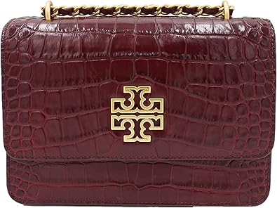 Tory Burch 78571 Claret With Gold Toned Hardware Britten Croc Small Adjustable Shoulder Bag Handbags Amazon Com